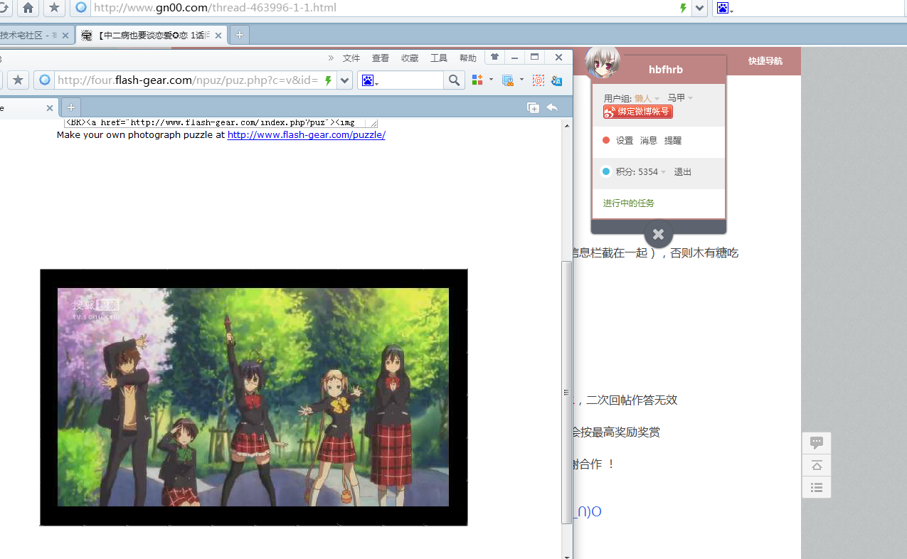 请按要求截图(开启两个浏览器窗口,把你完成的拼图和技宅信息栏截在一起),否则木有糖吃