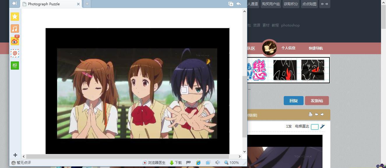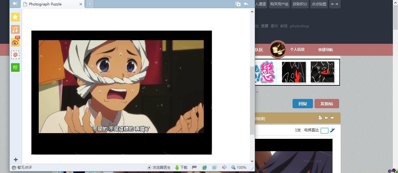 ②开启两个浏览器窗口,把你完成的拼图和技宅信息栏截在一起;举个栗子: