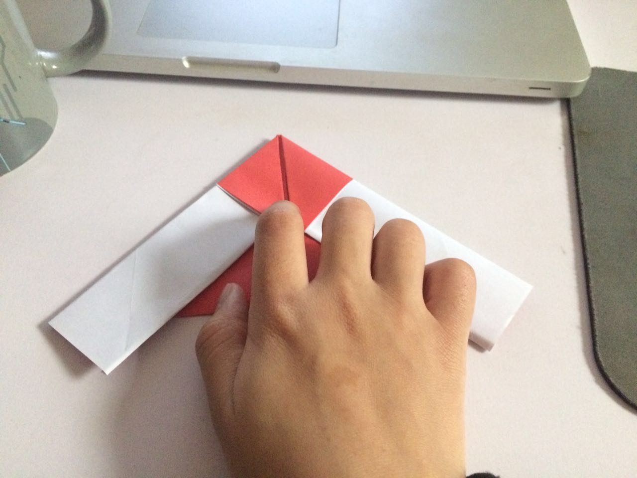 5、我们打开小角对着小角的线折。6、然后压好。7、我们把对面的角对其顶线折好。[查看全文]