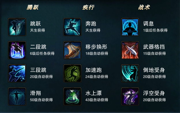 身法是战术用的技能,除了天生的跳跃行走,将来可以通过任务或秘籍获得。