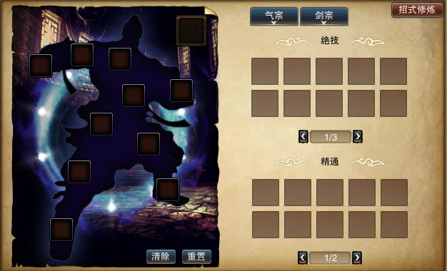 专精武学是资深弟子才能接触到的武学。不通过门派宗师的严格考验,就无法习得这些技能。这些武学的使用技巧相当高,但在特定场合下,往往能发挥出数倍的功效。每个门派都有两套专精武学,侧重不同的修习方向。比如少林有注重外功的普渡杖法,亦有注重内功的罗汉拳法。玩家满足等级要求即可修习,二者互不影响,只是在迎敌时可根据PVP或PVE需求的不同自行选择更适合的武学套路。