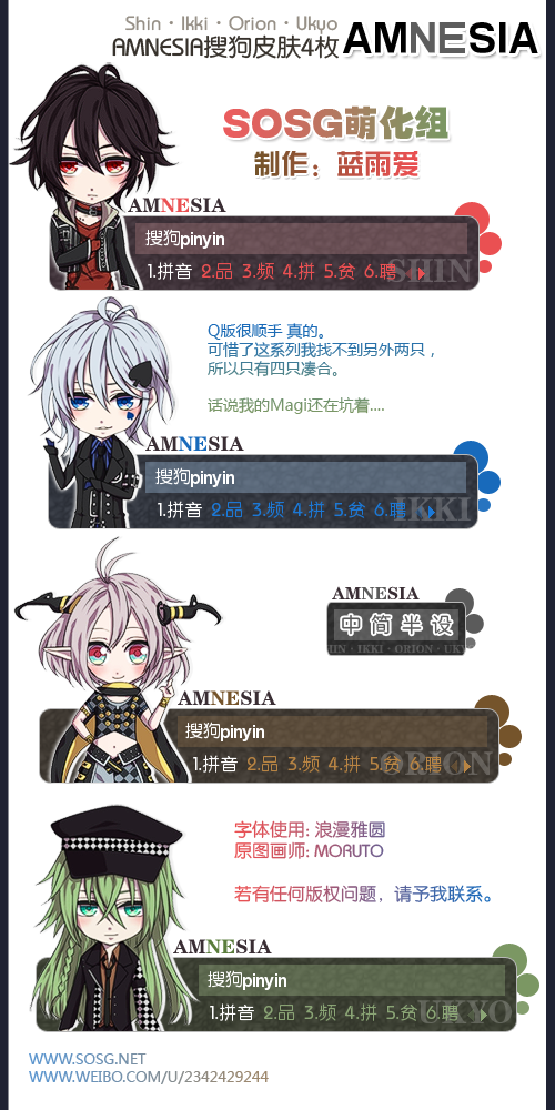 【度盘】【SOSG萌化组】Amnesia搜狗皮肤4枚+【授权】简易签