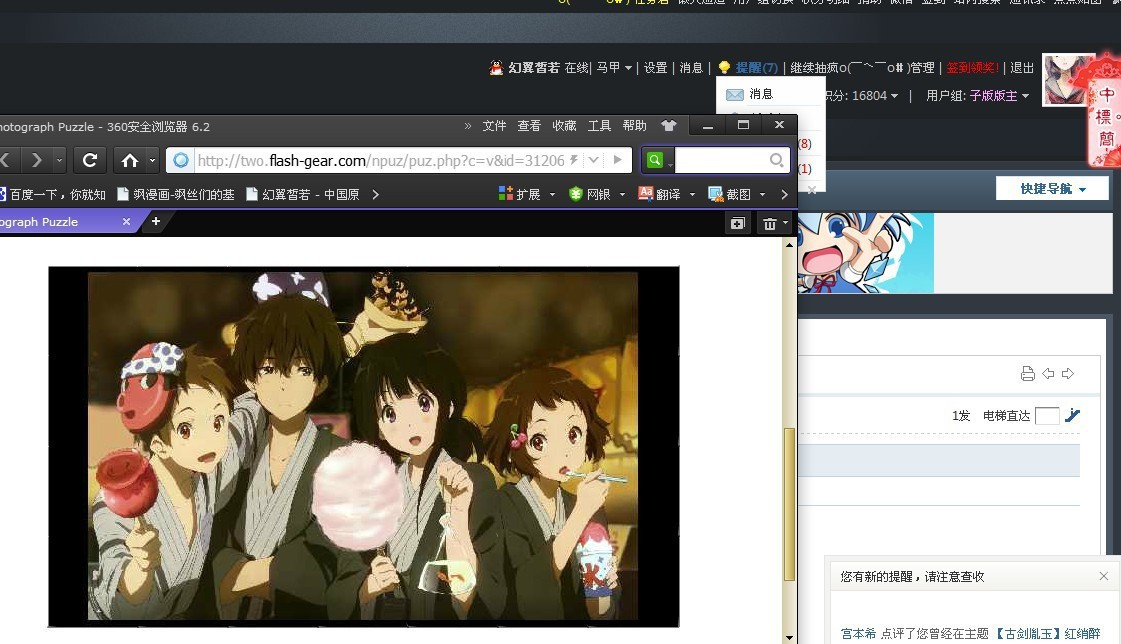 ②开启两个浏览器窗口,把你完成的拼图和技宅信息栏截在一起
