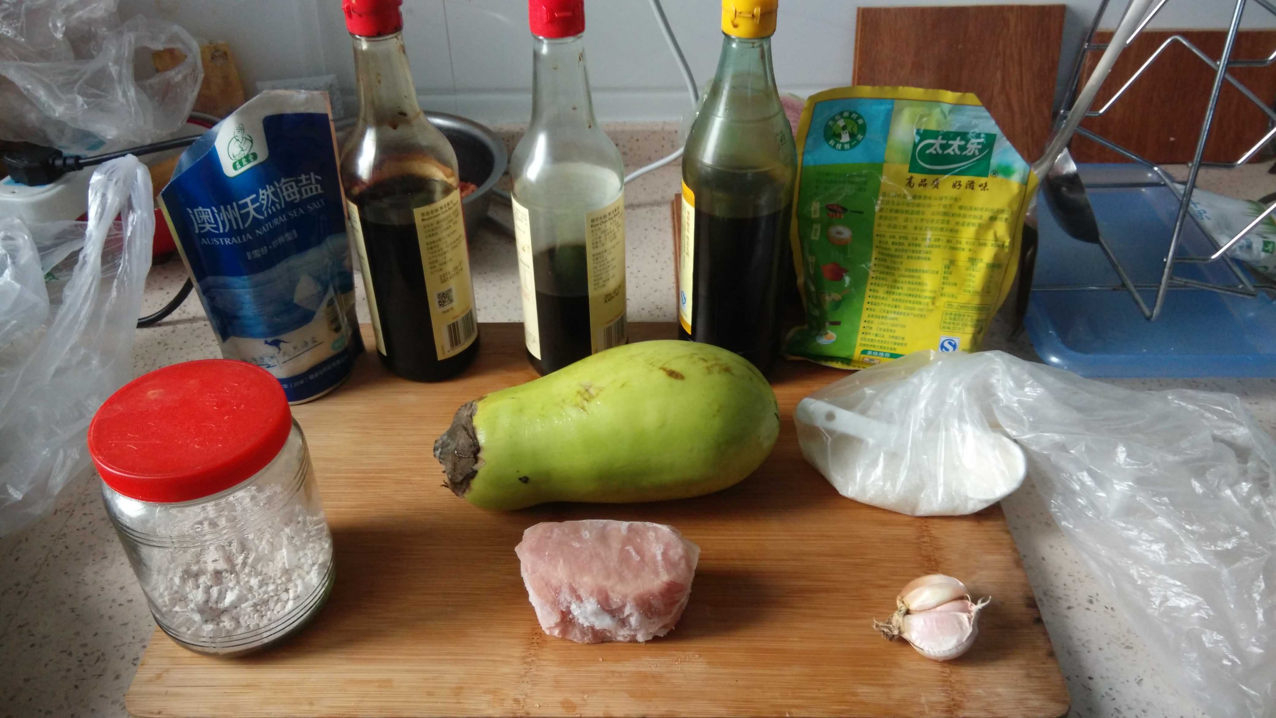 2.原料:米饭,冬菇,瘦肉