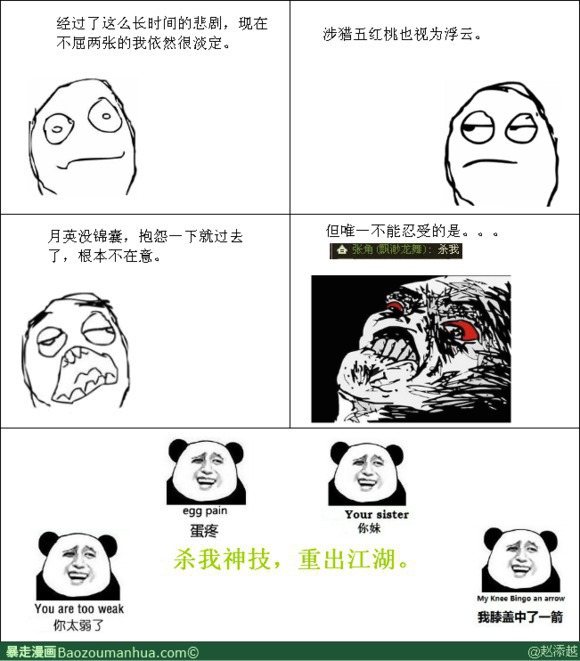 此组合一本一波流,通过乱射,(也叫乱基)干死一个好机油,然后曹丕比较重口味,喜欢死人,这样一来曹丕又可以帮助袁绍乱射了。。。把其他小三小四全射死了。。。最后 (不解释)